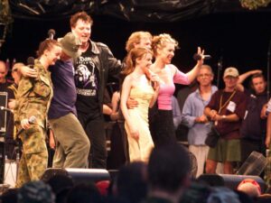 The attached photo is of the 2000 East Timor Concert with Kylie Minogue, John Farnham, Living End, James Blundell, Doc Neeson, with Roy and HG as hosts…………